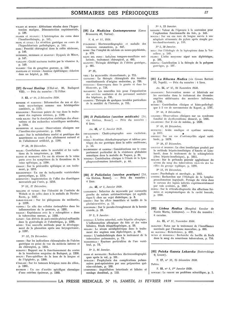 1939, Sommaires des périodiques. -