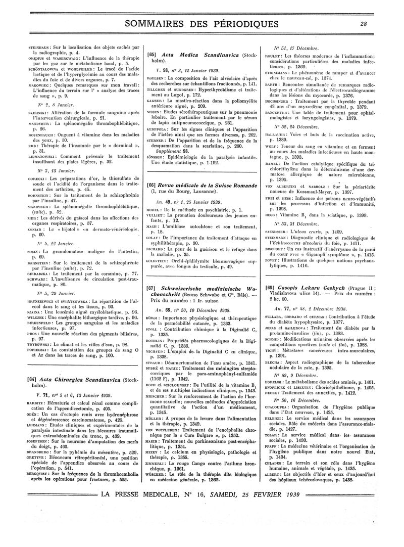 1939, Sommaires des périodiques. -