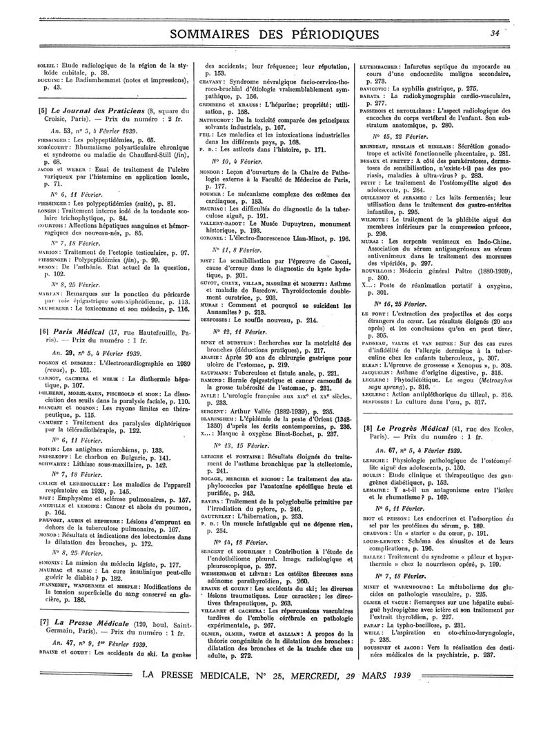 1939, Sommaires des périodiques. -
