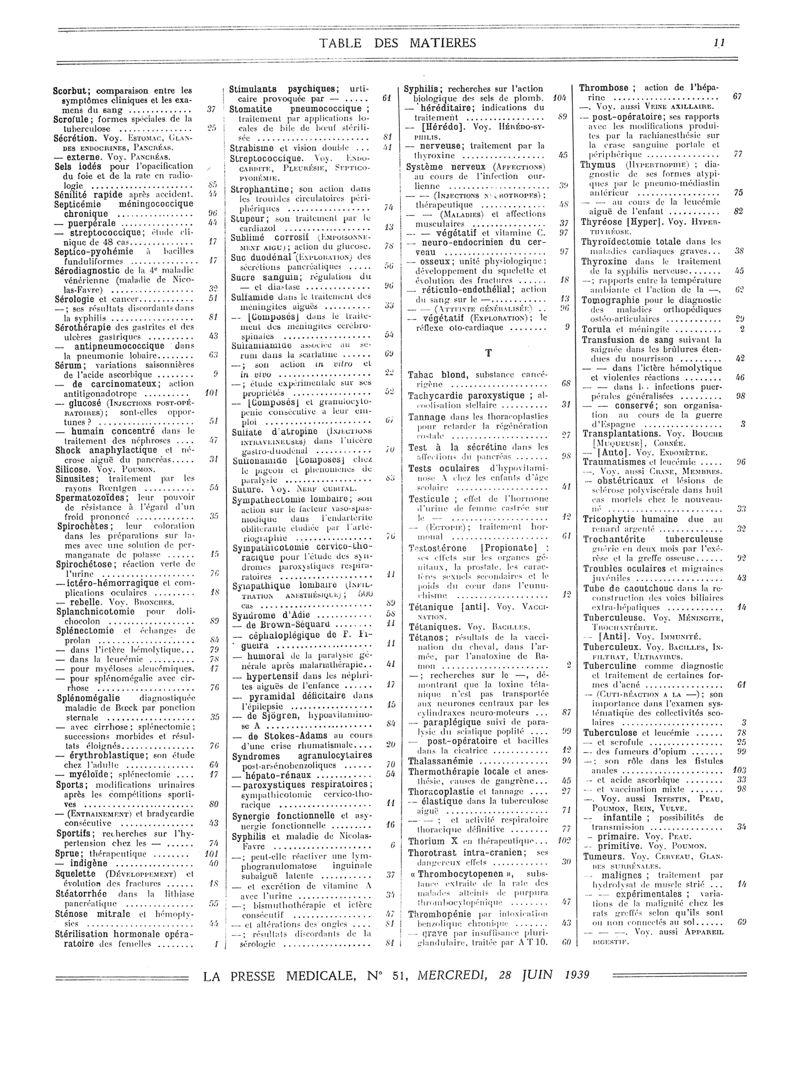 1939, Volume de tables. -