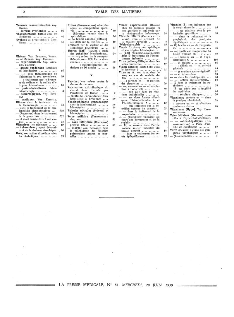1939, Volume de tables. -