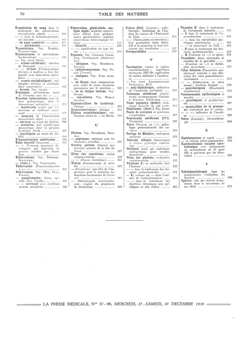 1939, Volume de tables. -
