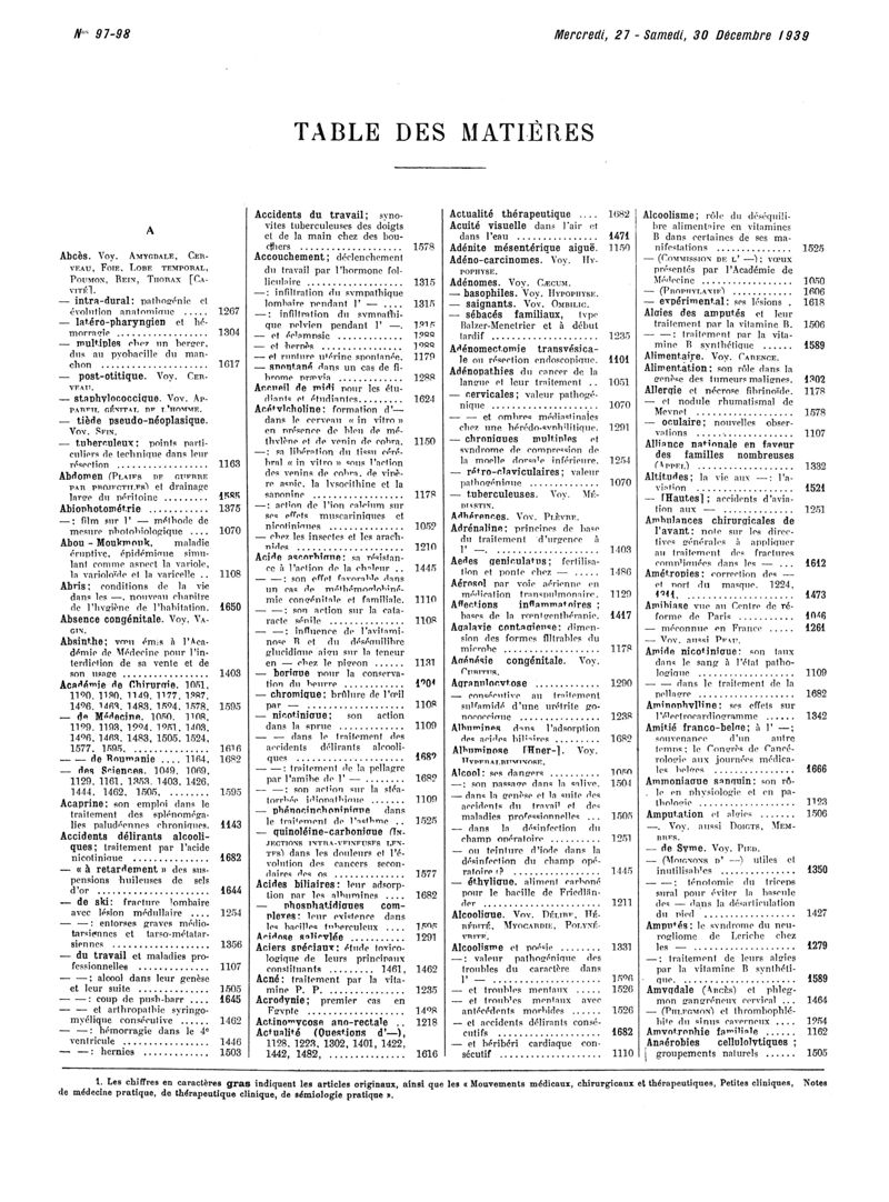1939, Volume de tables. -