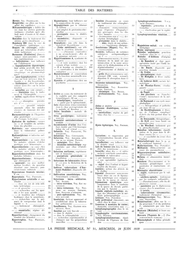 1939, Volume de tables. -