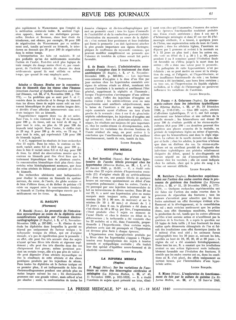 1940, Revue des journaux. -