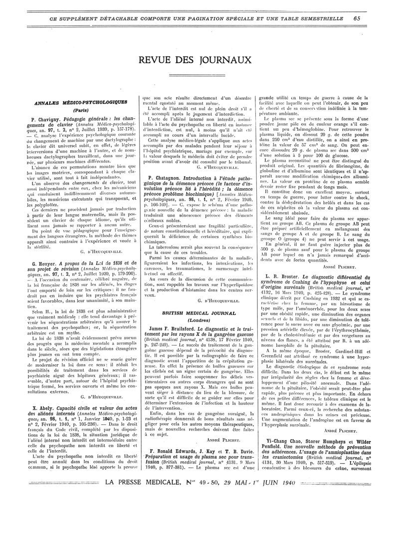 1940, Revue des journaux. -