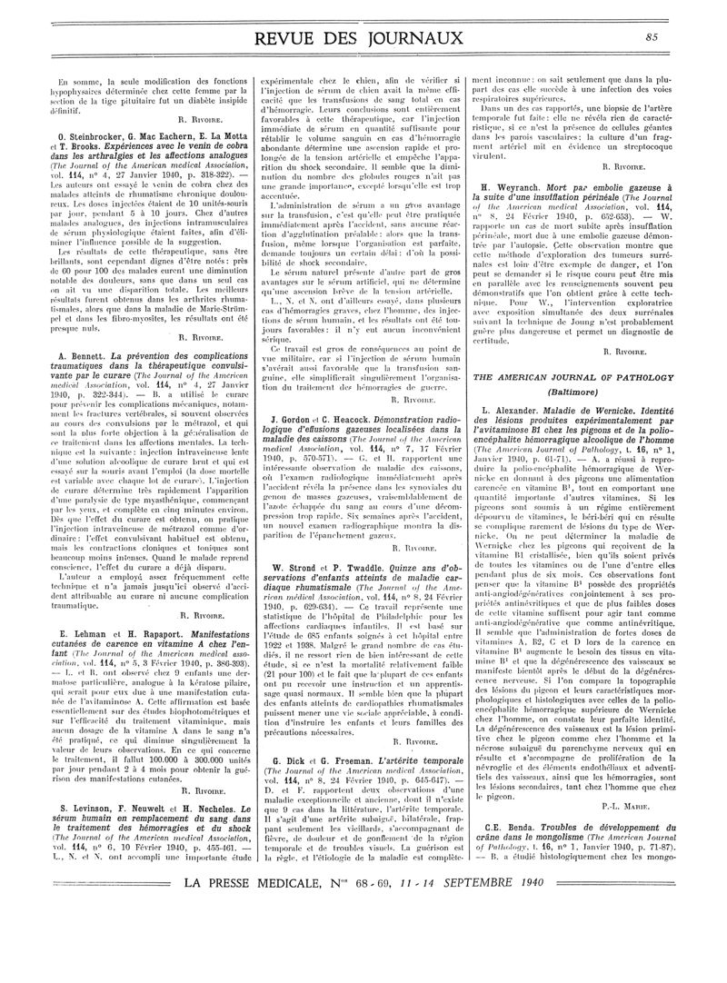 1940, Revue des journaux. -