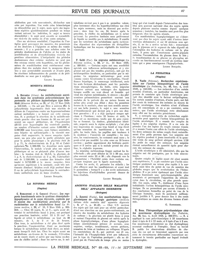 1940, Revue des journaux. -