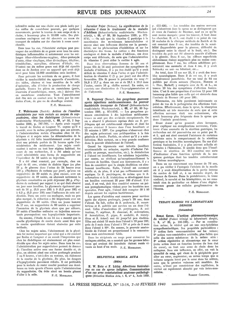 1940, Revue des journaux. -
