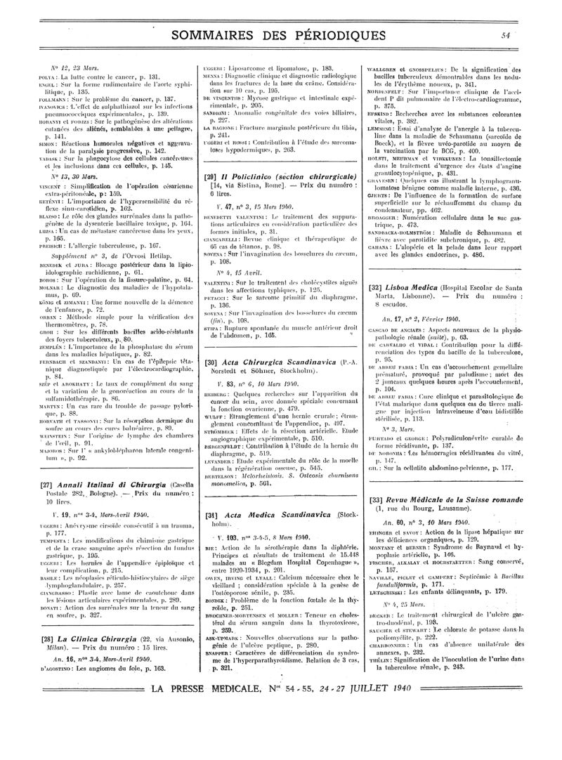 1940, Sommaires des périodiques. -