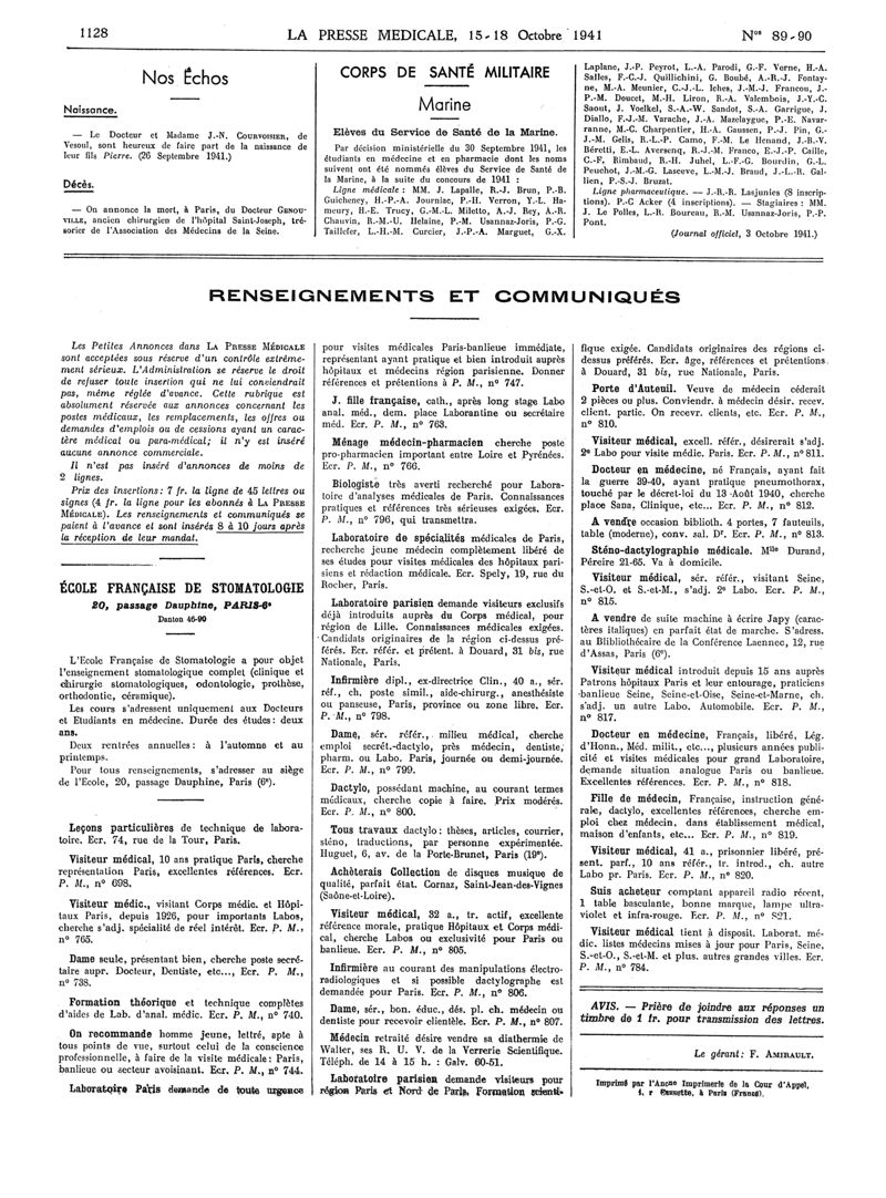 1941, Articles originaux. -