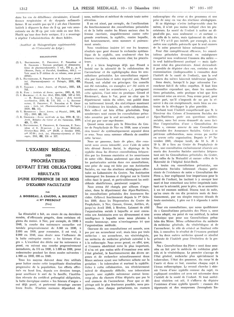 1941, Articles originaux. -