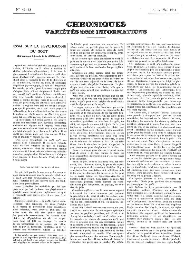 1941, Articles originaux. -