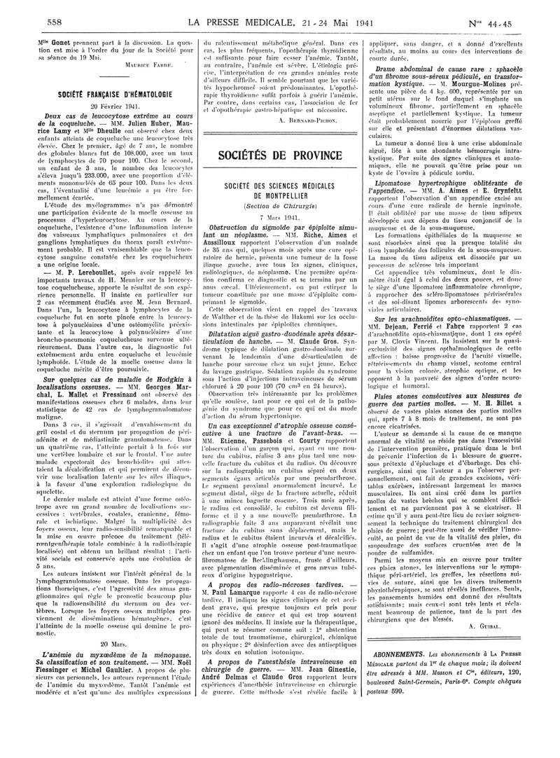 1941, Articles originaux. -
