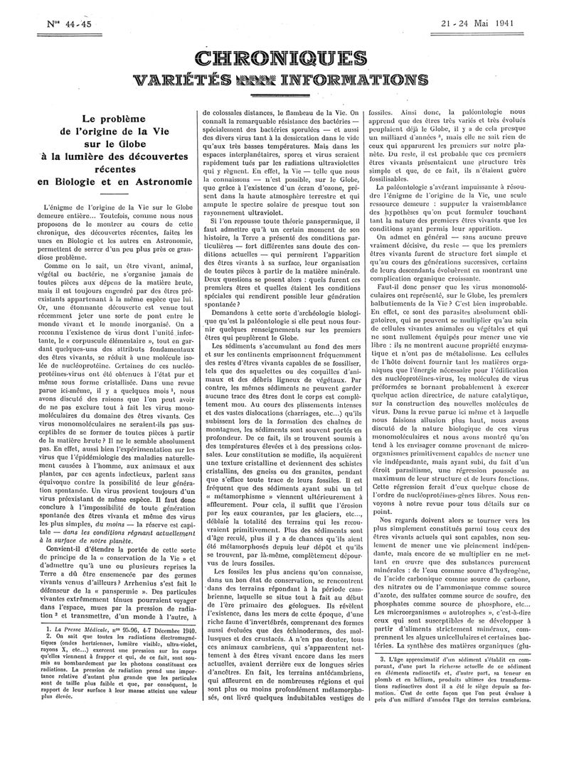 1941, Articles originaux. -