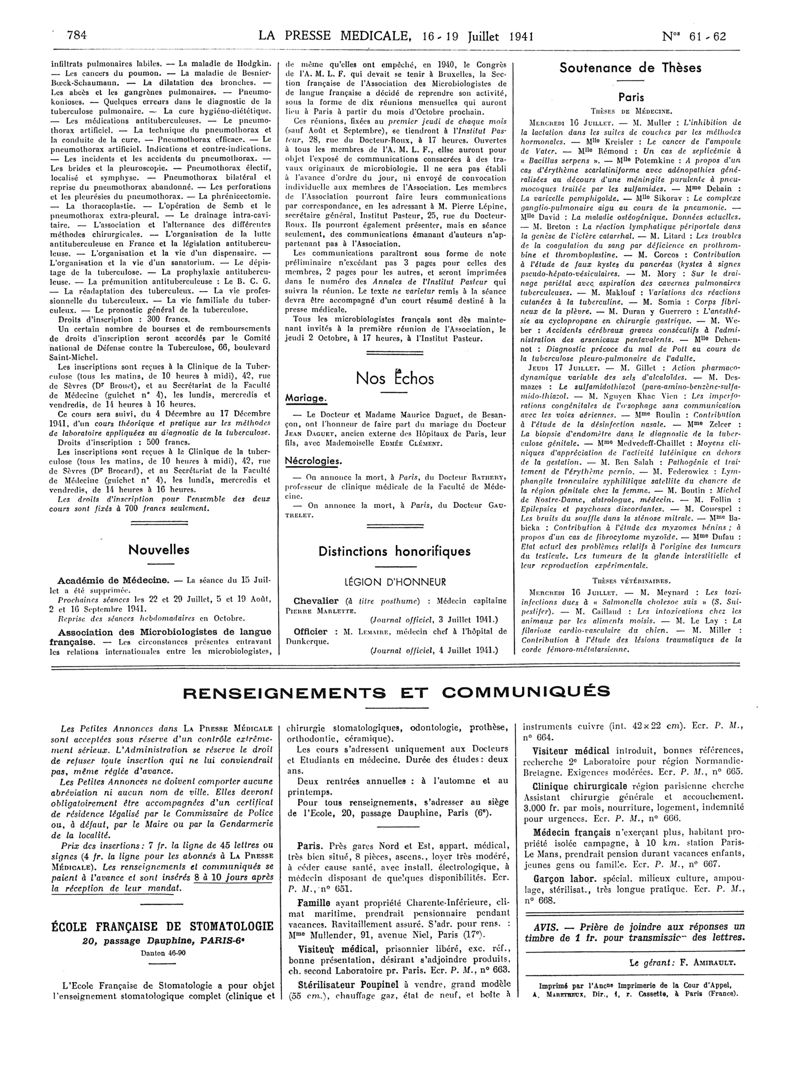 1941, Articles originaux. -