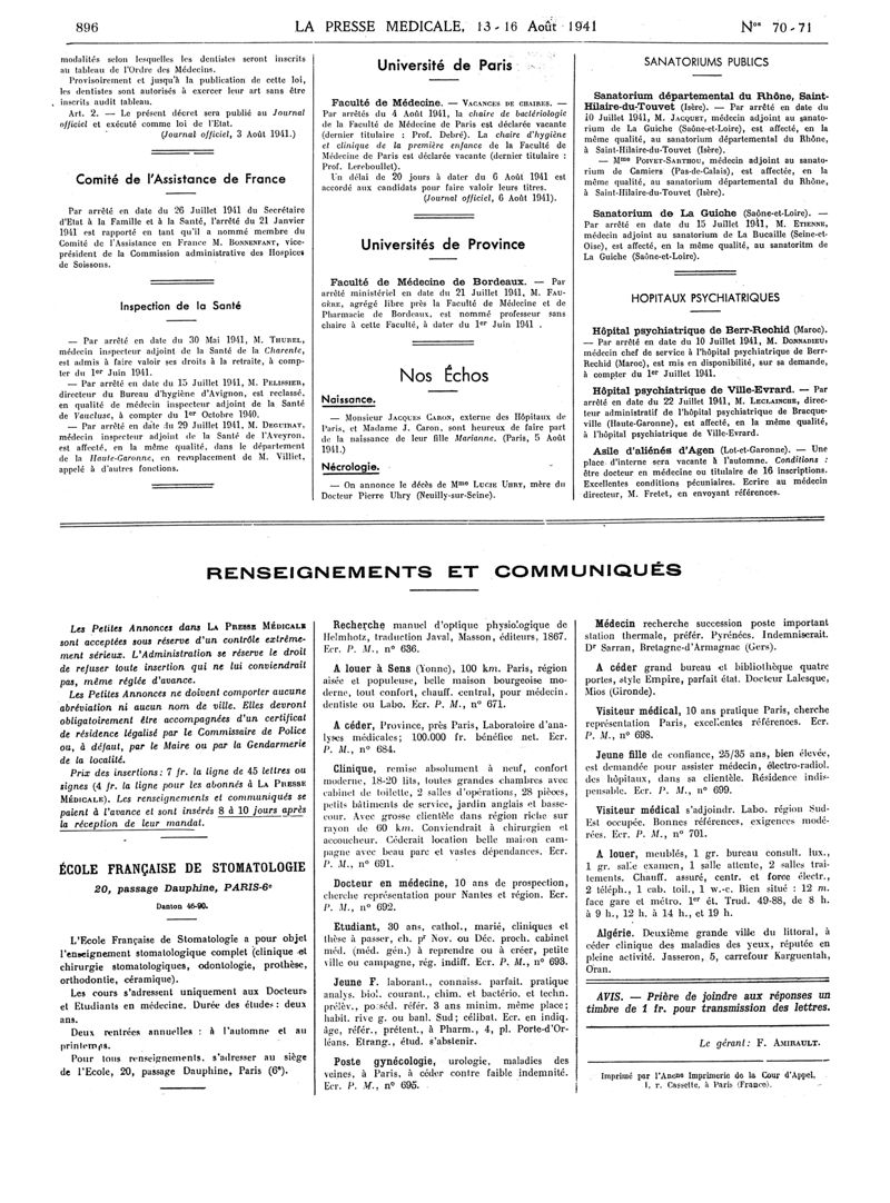 1941, Articles originaux. -