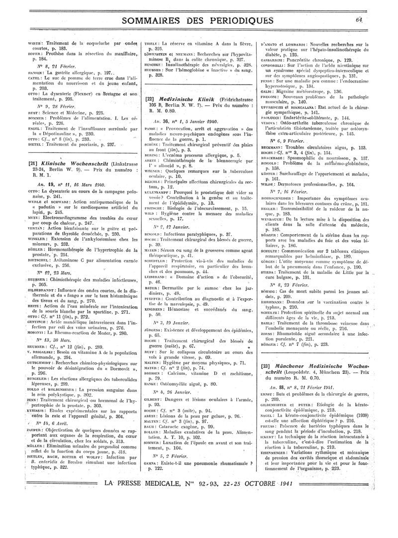 1941, Sommaires des périodiques. -