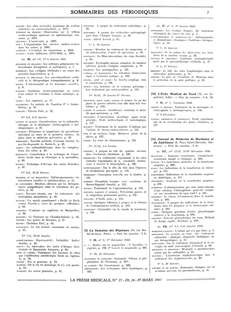 1941, Sommaires des périodiques. -