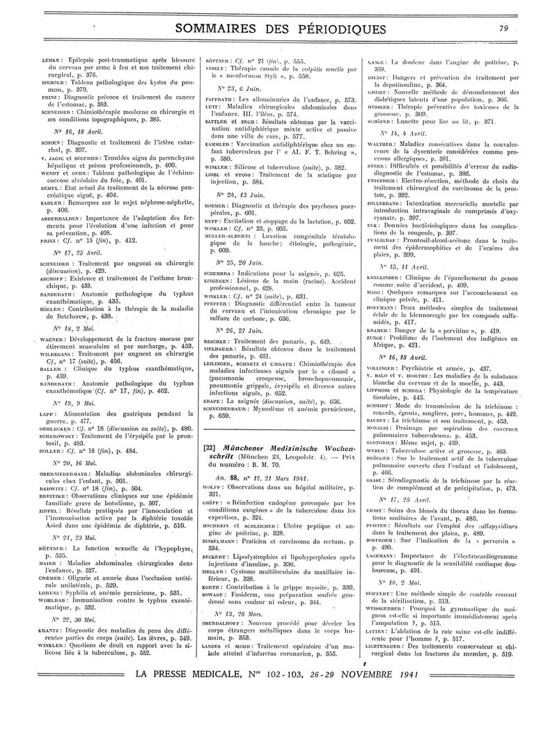 1941, Sommaires des périodiques. -