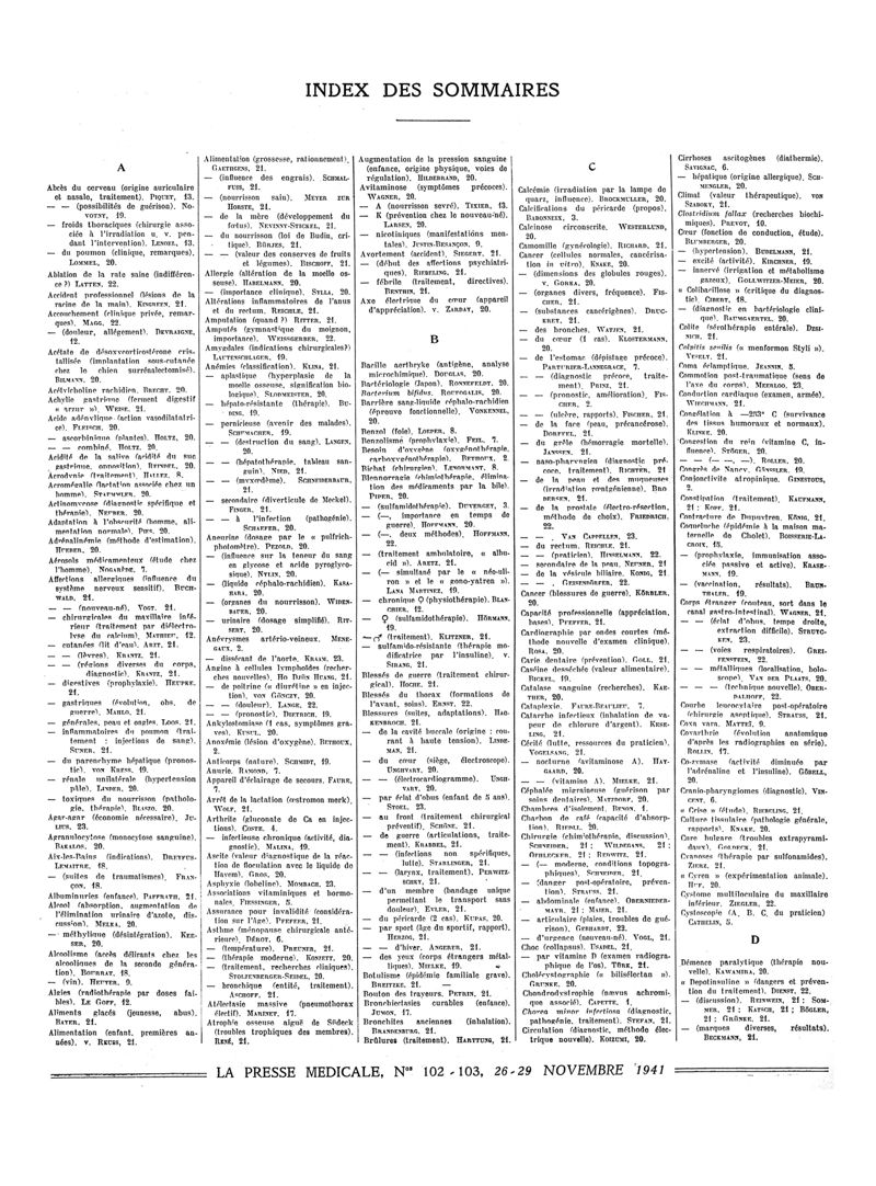 1941, Sommaires des périodiques. -