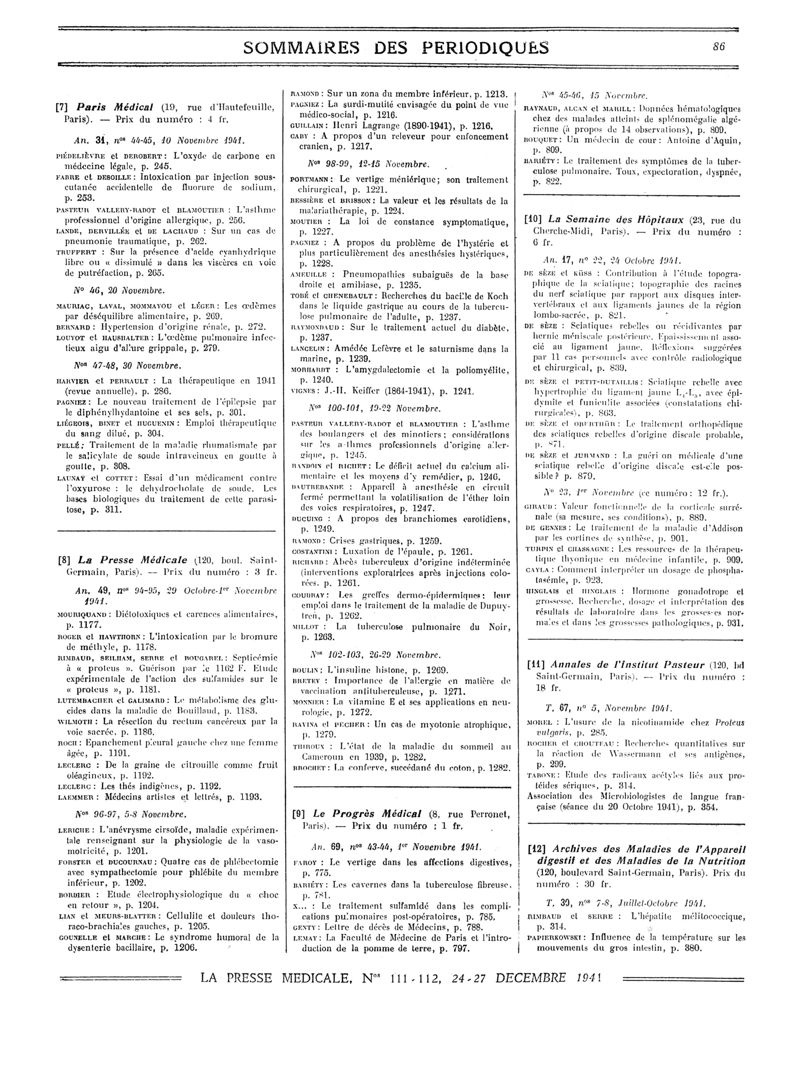 1941, Sommaires des périodiques. -