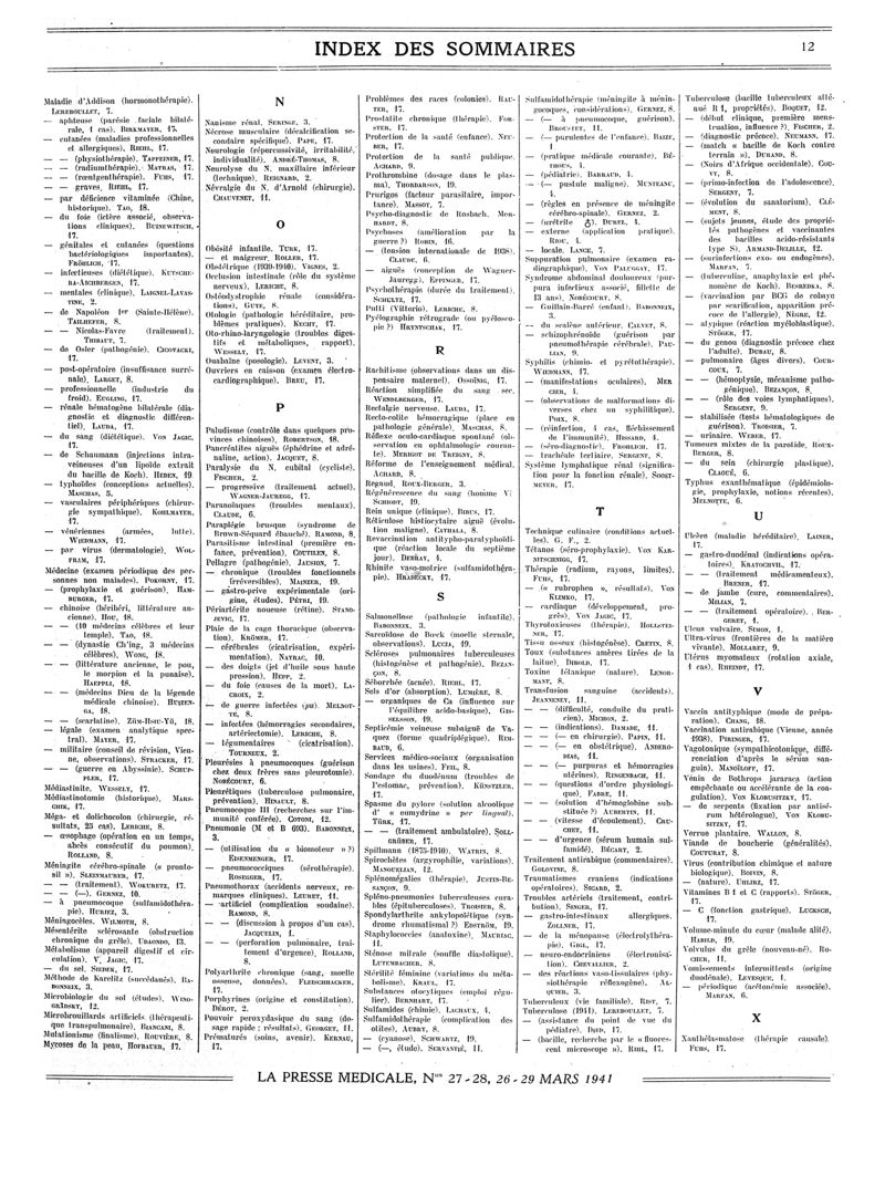 1941, Sommaires des périodiques. -