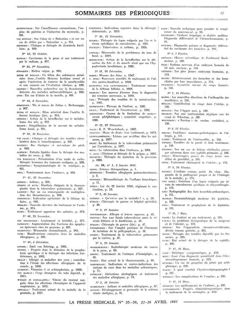 1941, Sommaires des périodiques. -