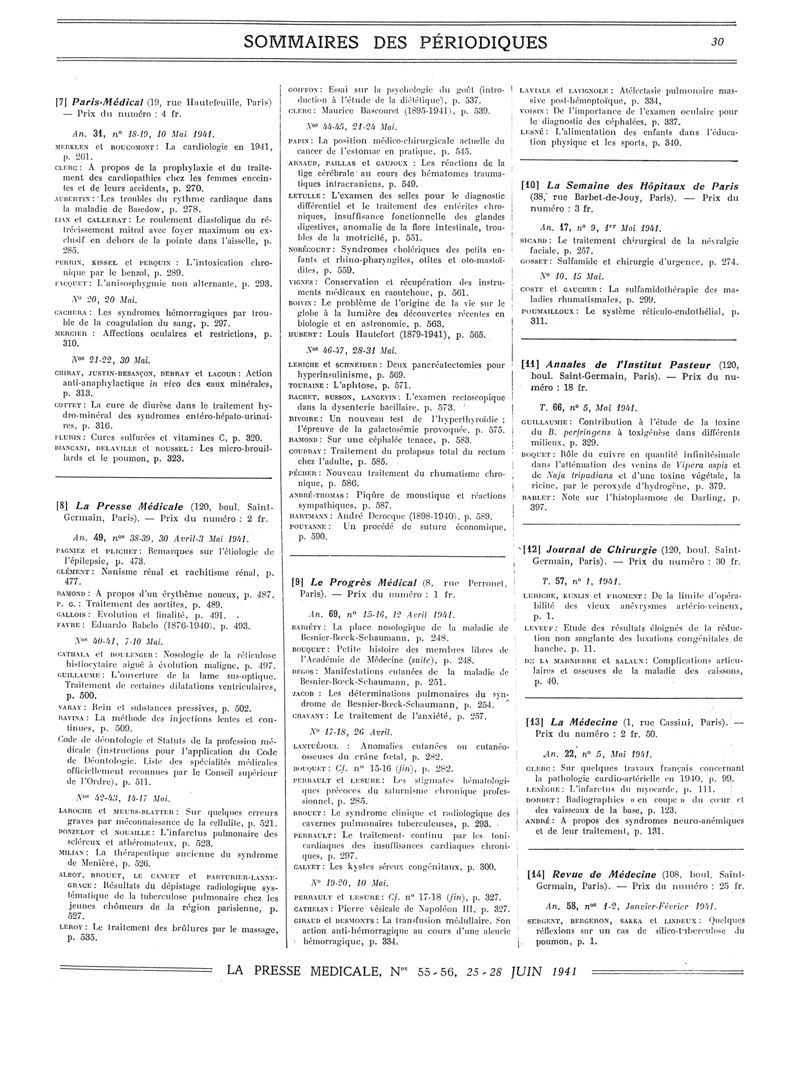 1941, Sommaires des périodiques. -