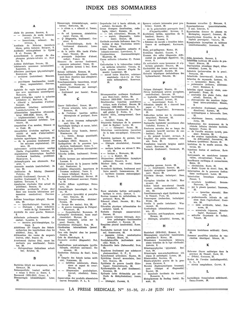 1941, Sommaires des périodiques. -