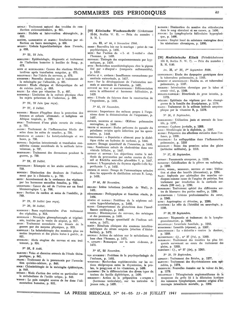 1941, Sommaires des périodiques. -