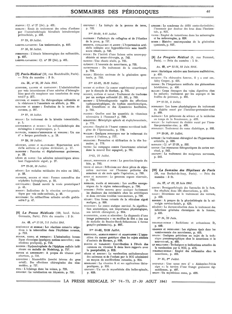 1941, Sommaires des périodiques. -