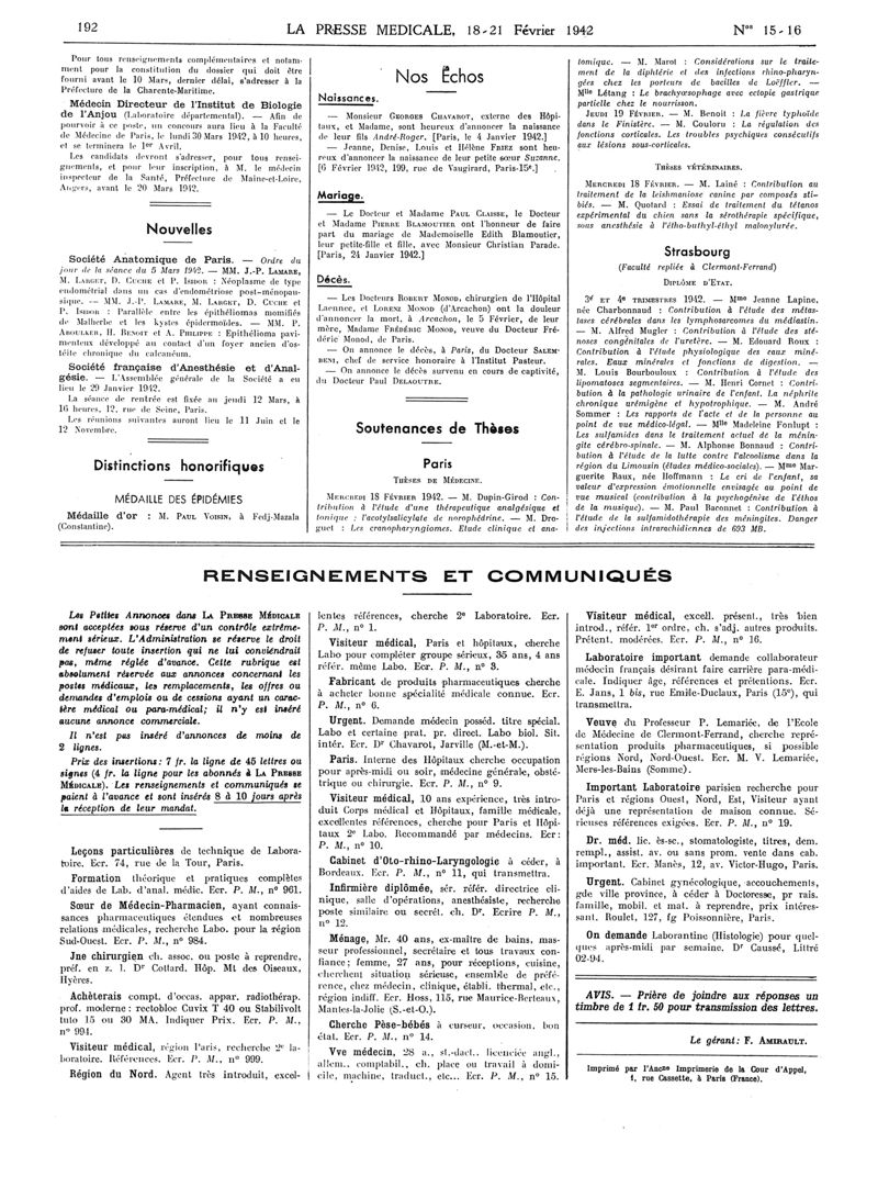 1942, Articles originaux. -