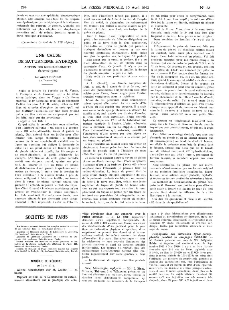1942, Articles originaux. -