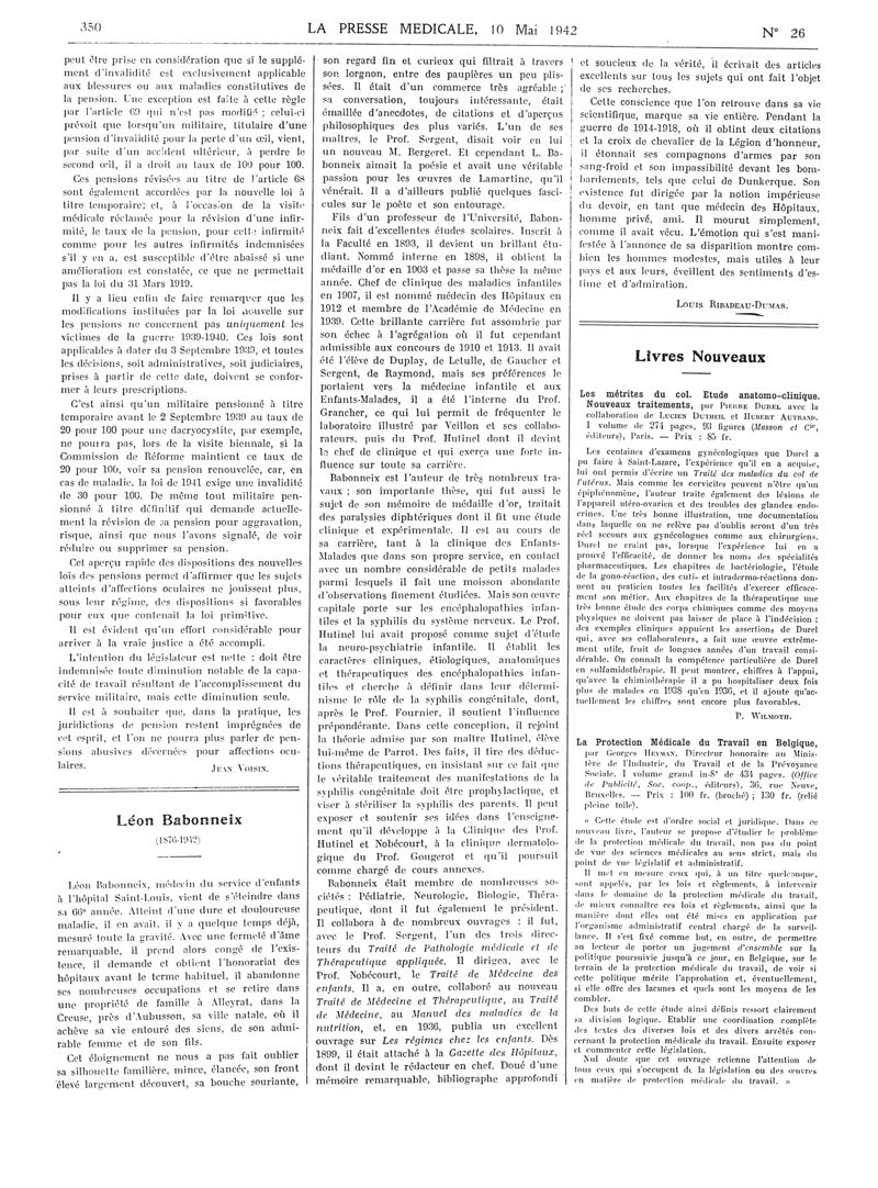 1942, Articles originaux. -