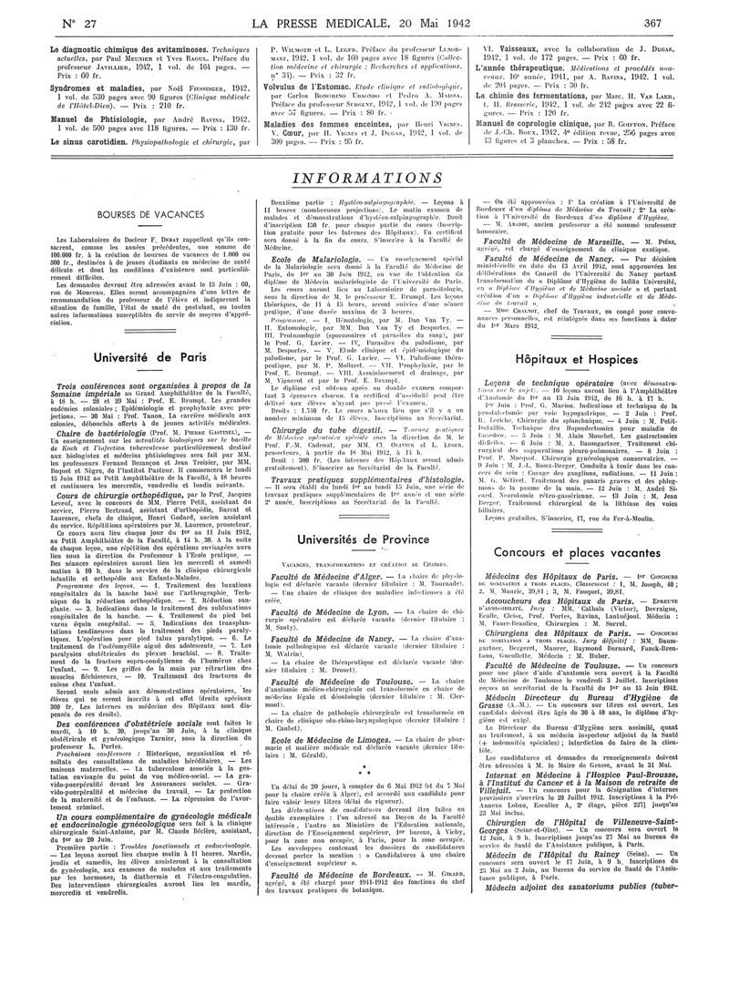 1942, Articles originaux. -