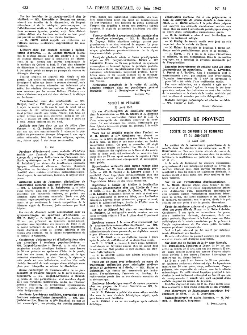 1942, Articles originaux. -