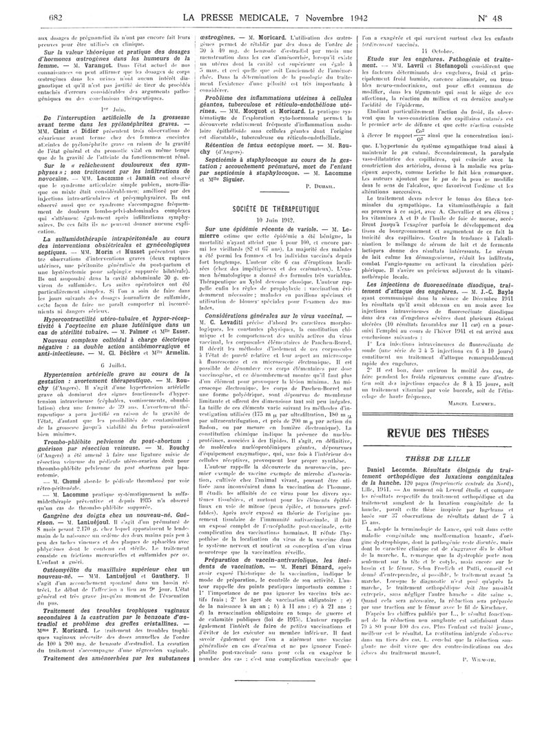 1942, Articles originaux. -