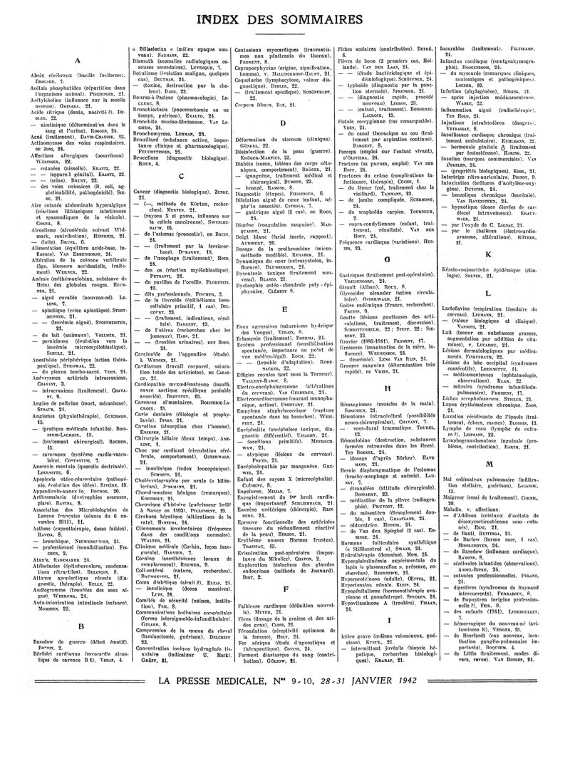 1942, Sommaires des périodiques. -