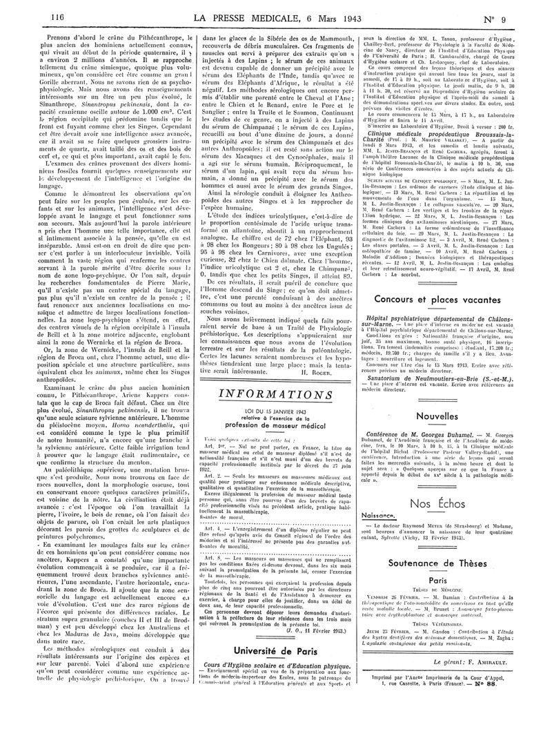 1943, Articles originaux. -