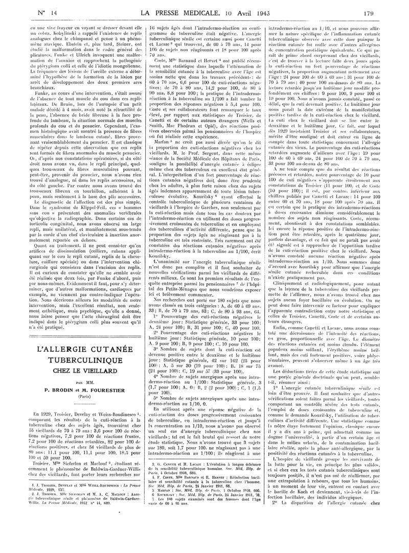 1943, Articles originaux. -