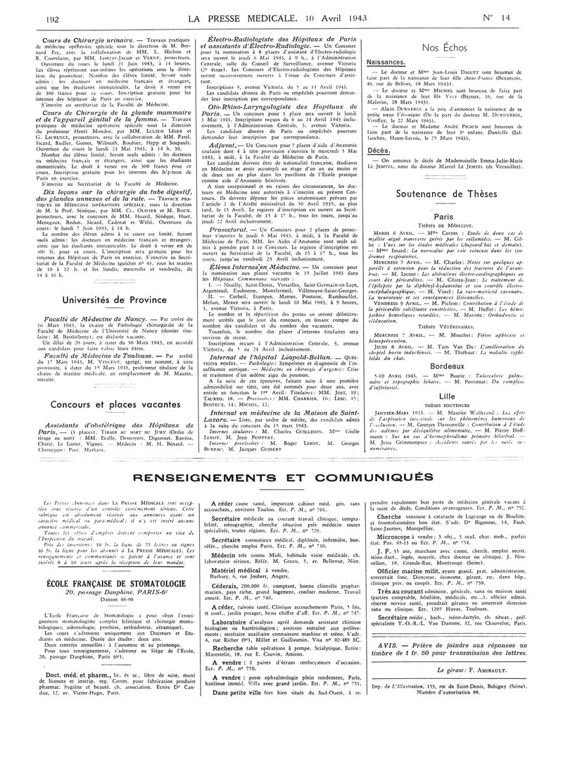1943, Articles originaux. -