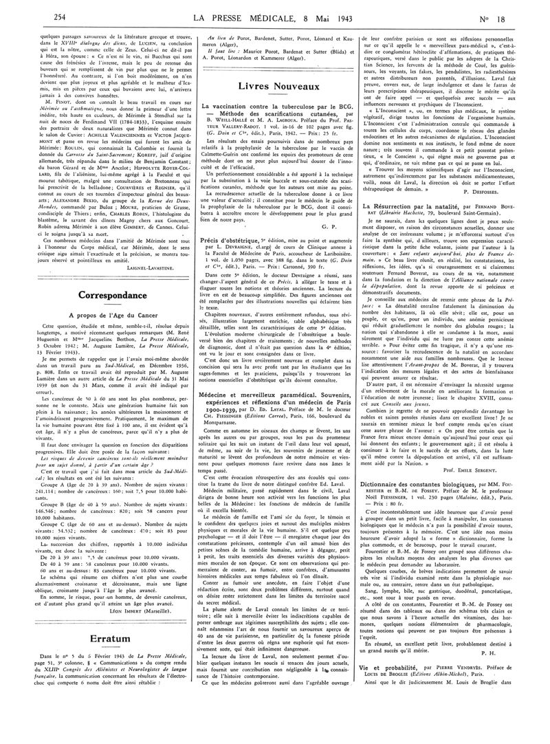 1943, Articles originaux. -