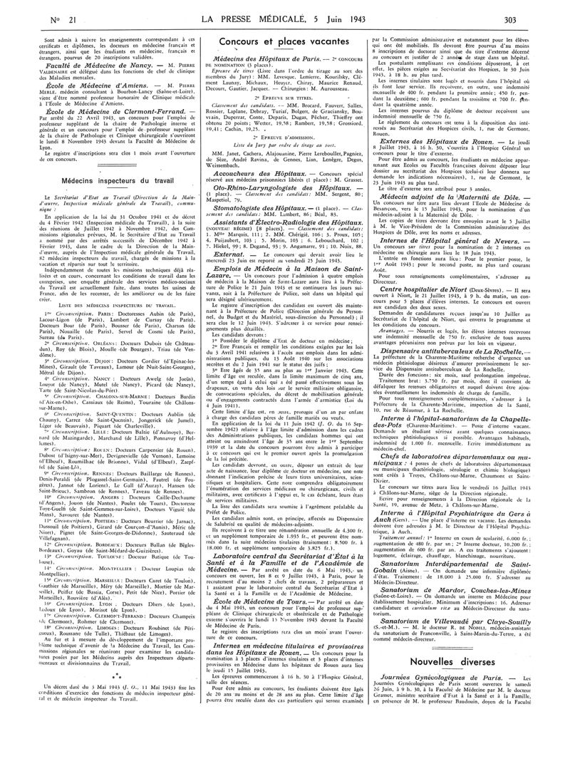 1943, Articles originaux. -
