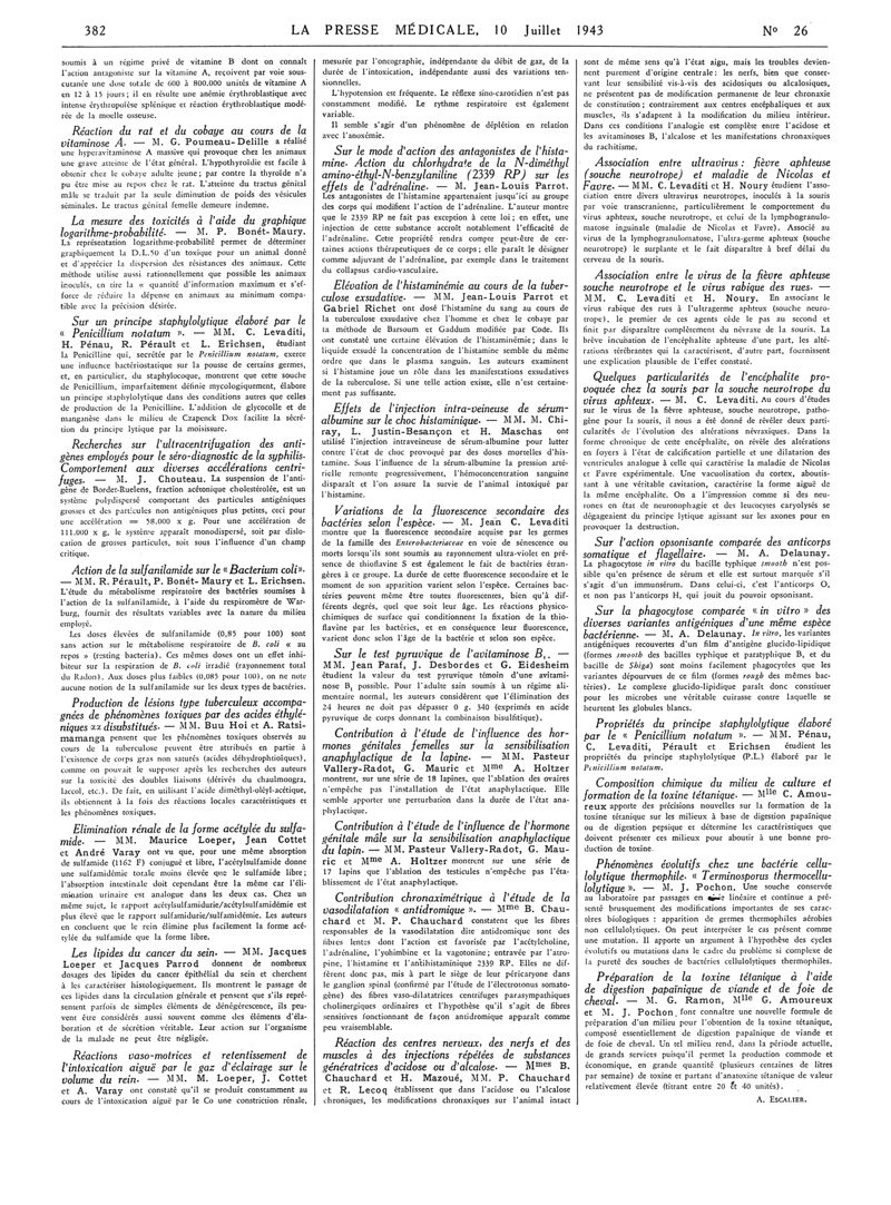 1943, Articles originaux. -