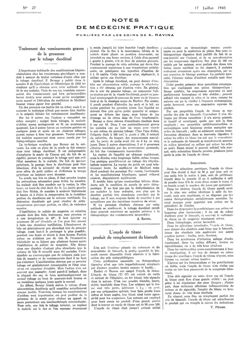 1943, Articles originaux. -