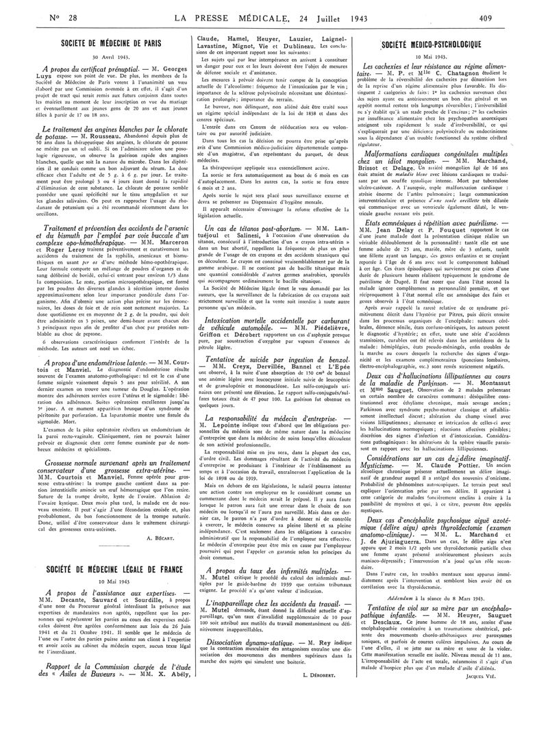 1943, Articles originaux. -