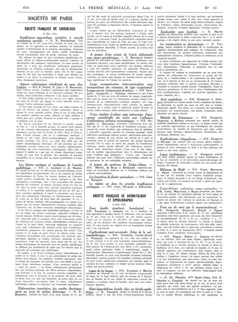 1943, Articles originaux. -