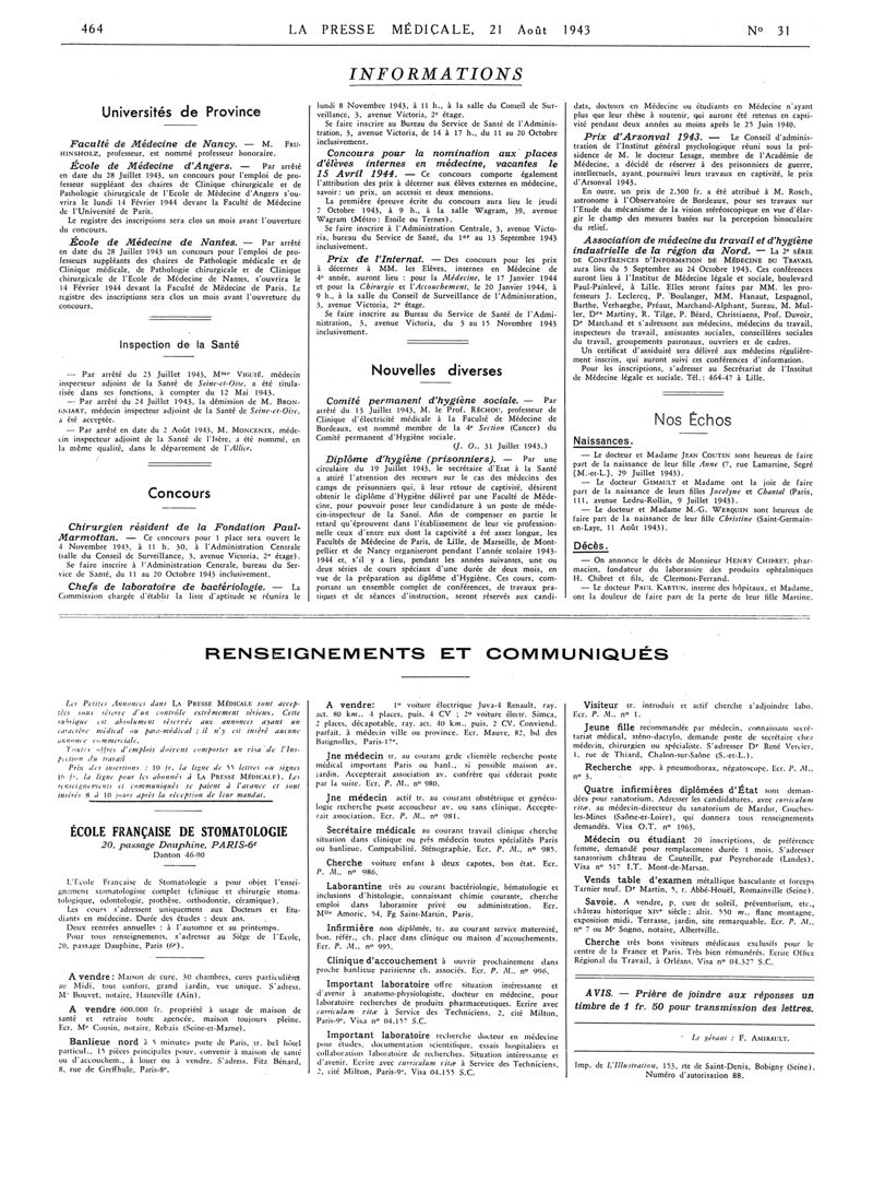 1943, Articles originaux. -