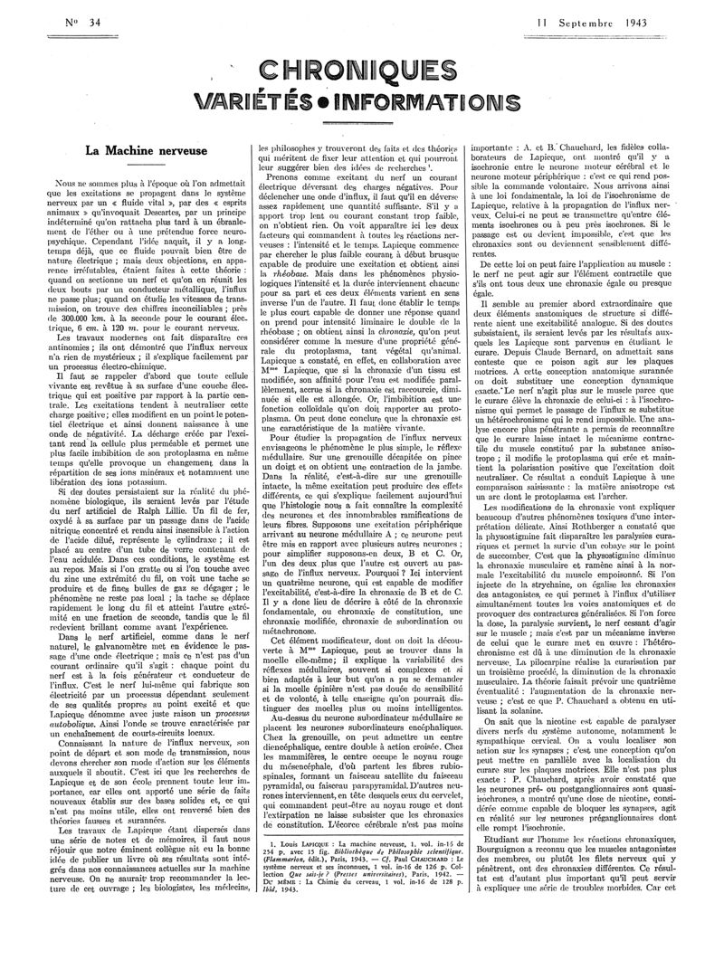 1943, Articles originaux. -